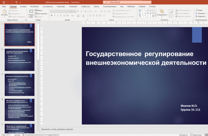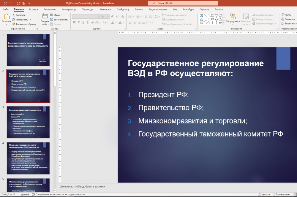Доклад на тему "Государственное регулирование внешнеэкономической деятельности / Методы государственного регулирования ВЭД"