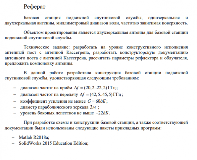В соответствии с техническим заданием проектируемый комплекс предназначается для использования в спутниковых линиях связи в качестве базовой станции подвижной спутниковой службы, что предъявляет к нему следующие требования: − высокое значение коэффициента усиления в полосе частот на приём и на передачу; − строгие ограничения по размеру антенны; − мобильность комплекса; Принимая во внимание вышесказанное, можно сделать вывод, что использование двухзеркальной 3-х метровой антенны будет оптимальным.
