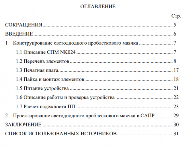 Курсовая работа по дисциплине «Основы конструирования и технологии приборостроения радиоэлектронных средств» на 25 с., 17 рис., 6 табл., 3 использованных источника. СВЕТОДИОДНЫЙ ПРОБЛЕСКОВЫЙ МАЯЧОК, ПЕЧАТНАЯ ПЛАТА, ПАЙКА. Объектом конструирования является светодиодный проблесковый маячок NK024. Цель работы — разработать конструкцию светодиодный проблесковый маячок NK024 в соответствии с техническим заданием на конструирование и технологию сборки. В результате была разработана конструкция светодиодного проблескового маячка. Она представляет собой печатный узел на основе однослойной печатной платы с припаянными радиокомпонентами. В работе были использованы следующие пакеты прикладных программ: Mathcad 15, Microsoft Office 2013, SolidWorks 2013SP5, Altium Designer 14.