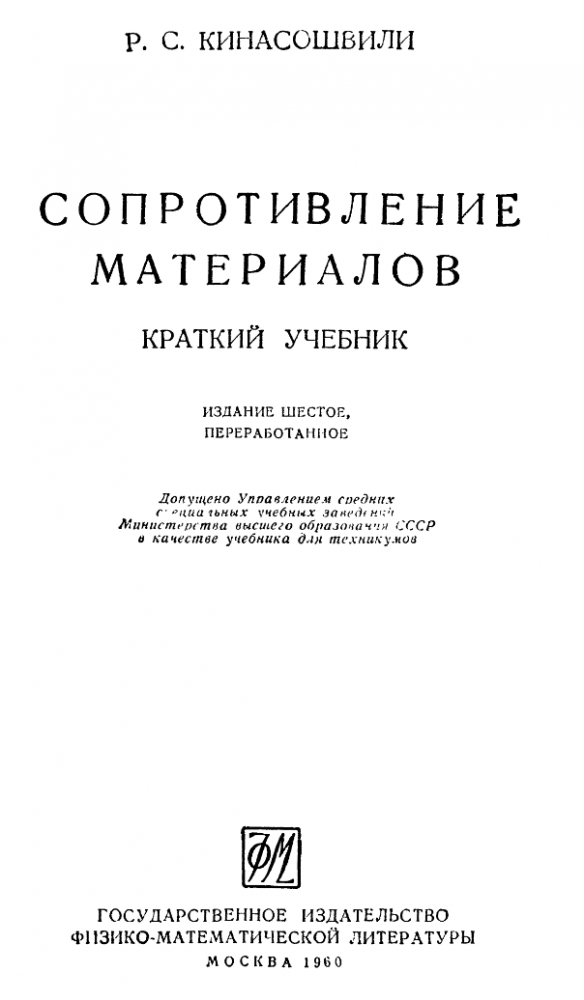 Книга: Р.С. Кинасошвили - Сопротивление материалов