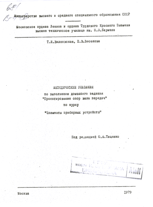 Книга: МУ по выполнению ДЗ "Проектирование опор вала передач" по курсу "Элементы приборных устройств"