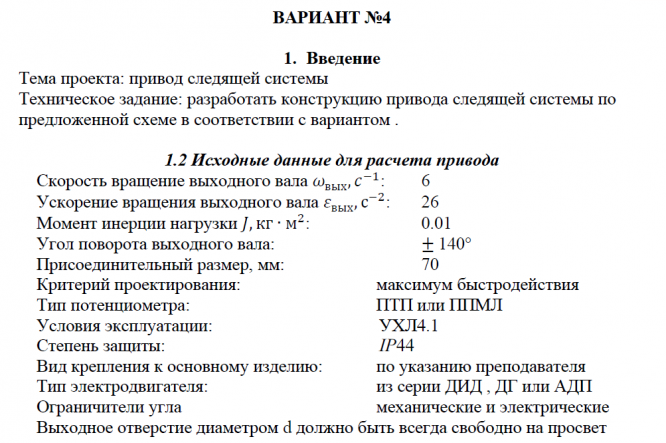 Разработка технического проекта с выпуском рабочей документации на электромеханическую часть привода следящей системы (вариант №4)