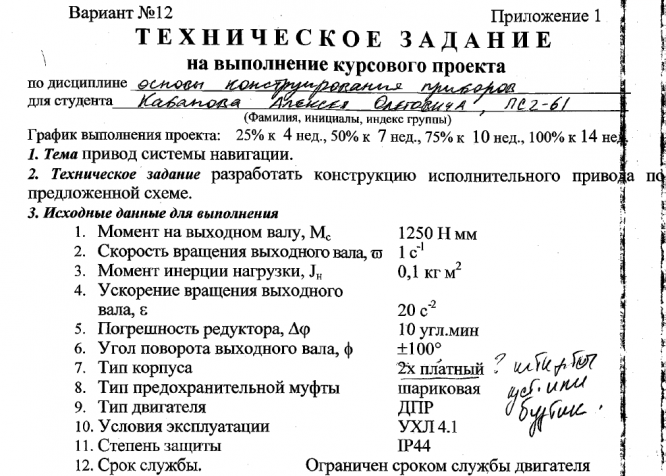 Главная » Учебные материалы » Основы конструирования приборов (ОКП) » Курсовые работы » МГТУ им. Н.Э.Баумана » Несколько классов/семестров » Вариант 12 » Привод системы управления антенной радиолокационной системы наведения (вариант №12)