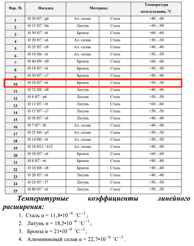 Проверить возможность применения посадок при заданной температуре эксплуатации.