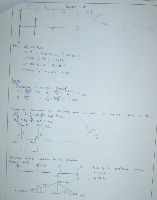 ДЗ 2: Расчет валов и опор зубчатых передач вариант 14