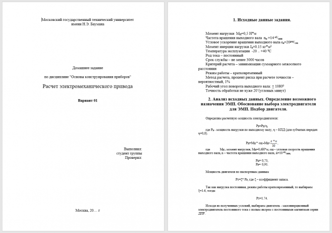 Для студентов МГТУ им. Н.Э.Баумана по предмету Основы конструирования приборов (ОКП)Расчет электромеханического привода (ЭМП)Расчет электромеханического привода (ЭМП)