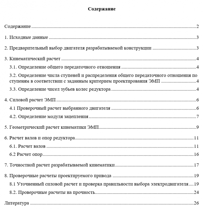 Разработать согласно заданного варианта кинематическую схему ЭМП и рабочий чертеж зубчатого колеса. Результаты расчета ЭМП представляются в виде расчетно-пояснительной записки, в которой должны содержаться следующие разделы: Исходные данные задания. Анализ исходных данных. Определение возможного значения ЭМП. Обоснование выбора электродвигателя для ЭМП. Подбор двигателя. Кинематический расчет ЭМП. 3.1. Определение общего передаточного отношения. 3.2. Определение числа ступеней и определение общего передаточного отношения по ступеням в соответствии с заданным критерием проектирования ЭМП. 3.3. Определение чисел зубьев колес редуктора. Силовой расчет ЭМП. Предварительная проверка правильности выбора электродвигателя.