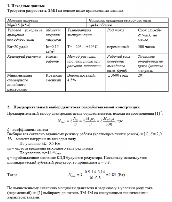 Для студентов МГТУ им. Н.Э.Баумана по предмету Основы конструирования приборов (ОКП)Расчет электромеханического привода (ЭМП)Расчет электромеханического привода (ЭМП)