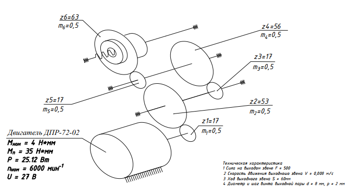 Для студентов МГТУ им. Н.Э.Баумана по предмету Основы конструирования приборов (ОКП)Механизм линейных перемещений - Расчет двигателя + КомпоновкаМеханизм линейных перемещений - Расчет двигателя + Компоновка
