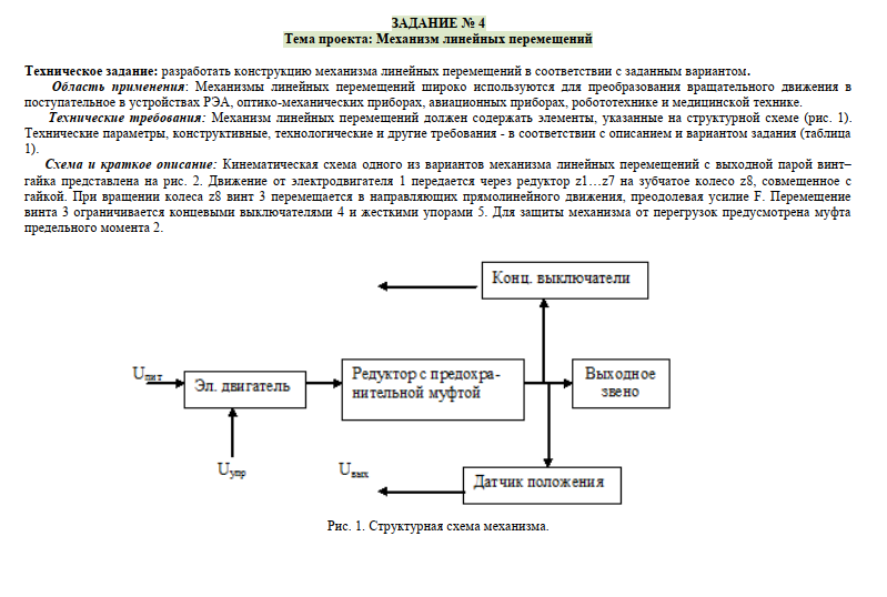 Для студентов МГТУ им. Н.Э.Баумана по предмету Основы конструирования приборов (ОКП)Механизм линейных перемещений - Расчет двигателя + КомпоновкаМеханизм линейных перемещений - Расчет двигателя + Компоновка