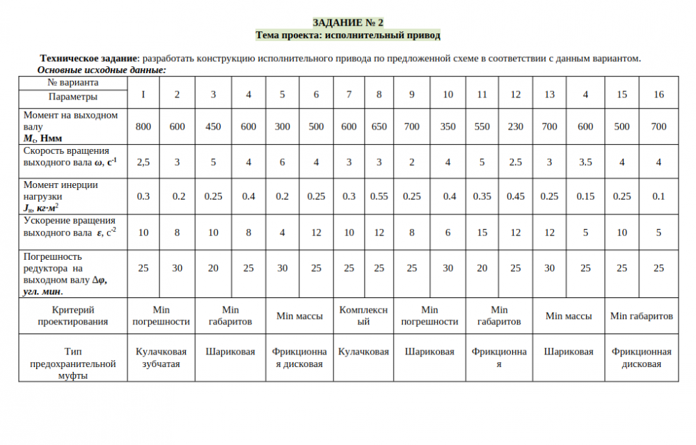 ДЗ 1: Исполнительный привод - Расчет двигателя + Компоновка вариант 11