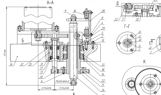 ДЗ 3: Механизм линейных перемещений - Чертеж общего вида вариант 5