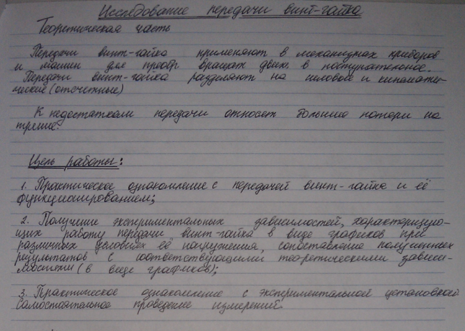 ЛР №1 - Исследование передачи винт-гайка