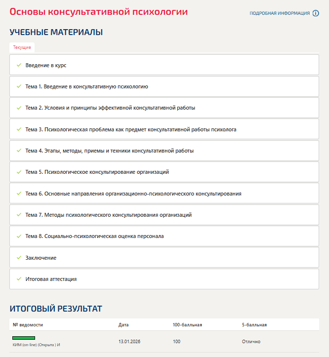 💯 Основы консультативной психологии Синергия Ответы на тесты 1-8, итоговый тест, компетентностный