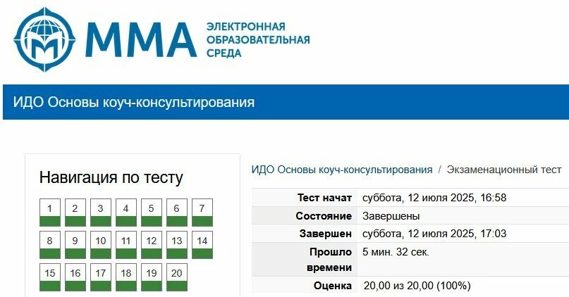 Сборник ответов к экзаменационному тесту Основы коуч-консультирования ММА.