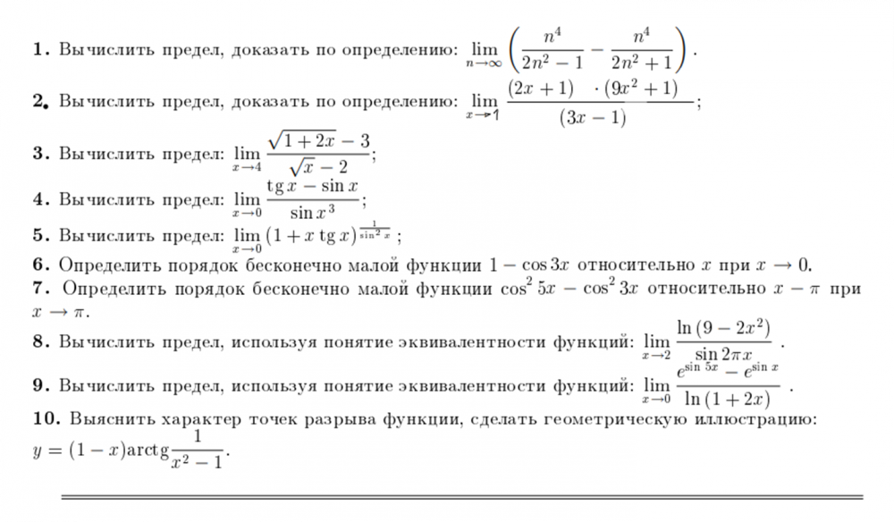 Для студентов МИЭТ по предмету Основы математического анализаКонтрольная работа 1. Пределы 2022Контрольная работа 1. Пределы 2022