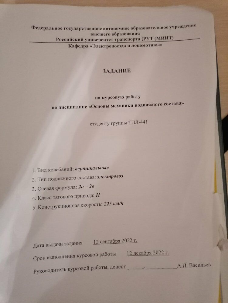 Курсовая работа Эл.воз 20-20 225 II: ИССЛЕДОВАНИЕ ВЫНУЖДЕННЫХ КОЛЕБАНИЙ ЗАДАННОЙ МОДЕЛИ ПОДВИЖНОГО СОСТАВА вариант Вертикальный
