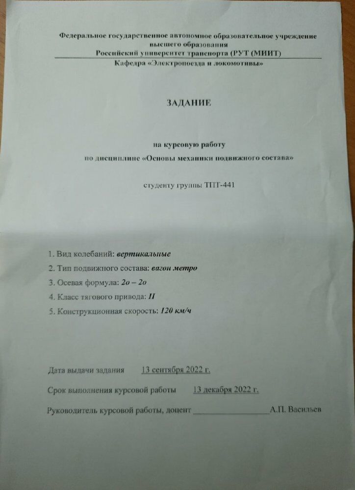 Курсовая работа В.метро 20-20 120 II: ИССЛЕДОВАНИЕ ВЫНУЖДЕННЫХ КОЛЕБАНИЙ ЗАДАННОЙ МОДЕЛИ ПОДВИЖНОГО СОСТАВА вариант Вертикальный