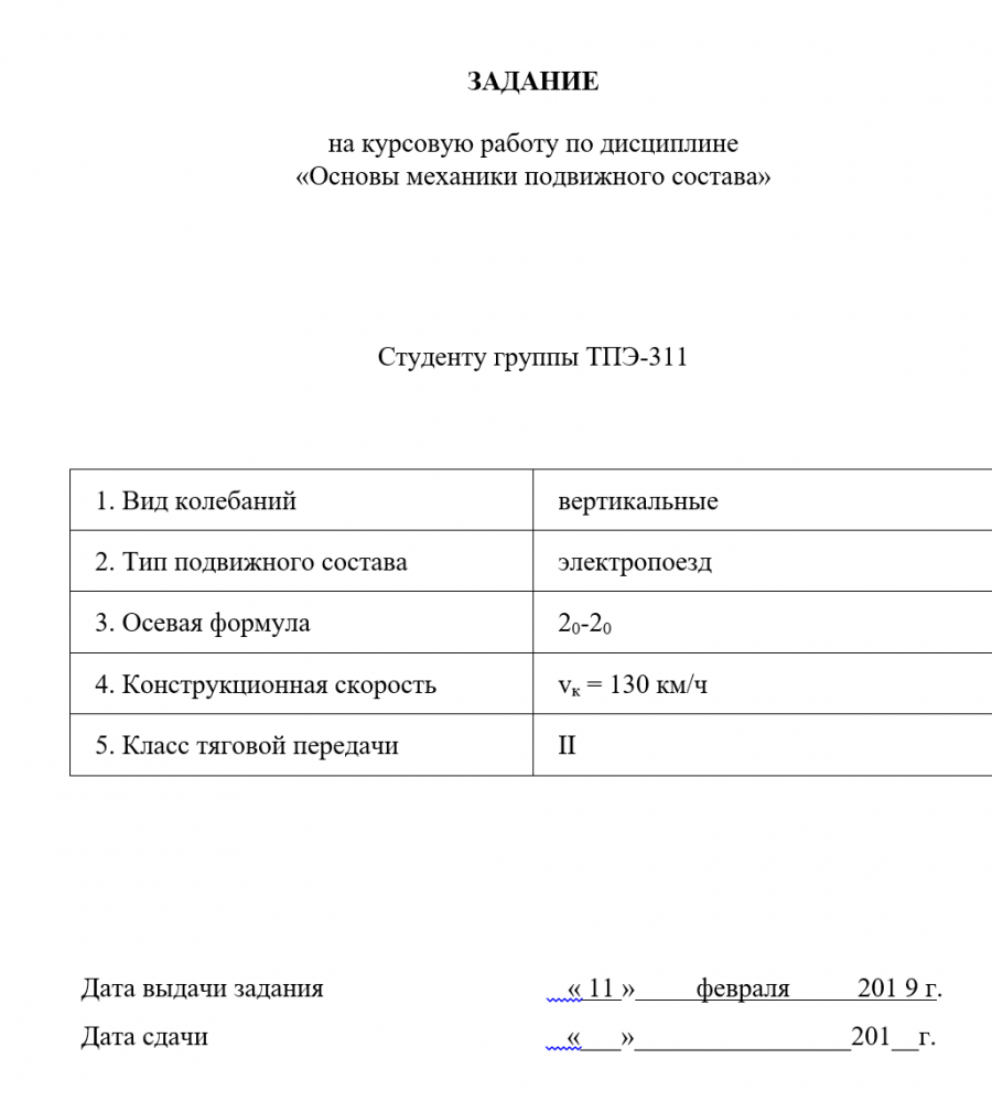 Российский университет транспорта РУТ (МИИТ) Кафедра "Электропоезда и локомотивы" Дисциплинна: Основы механики тягового подвижного состава ИССЛЕДОВАНИЕ ВЫНУЖДЕННЫХ КОЛЕБАНИЙ И УСТОЙЧИВОСТИ ЗАДАННОЙ МОДЕЛИ ЭПС Вид колебанийВертикальные Тип подвижного составаэлектровоз Осевая формула20-20 Класс тягового приводаII Конструкционная скорость км/ч130 .