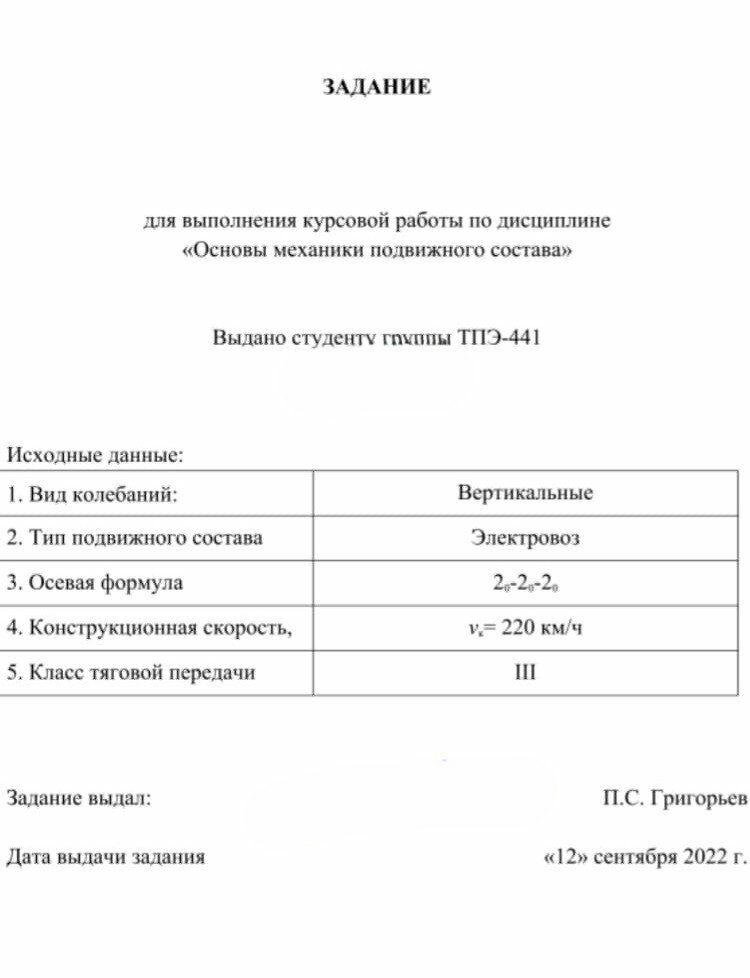 Курсовая работа Эл.воз 20-20-20 220: Исследование вынужденных колебаний моделей подвижного состава вариант Вертикальный