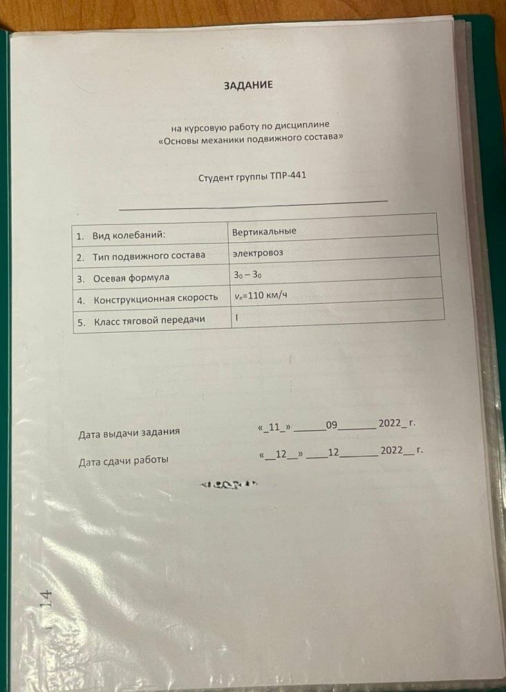 Дисциплинна: Основы механики тягового подвижного состава