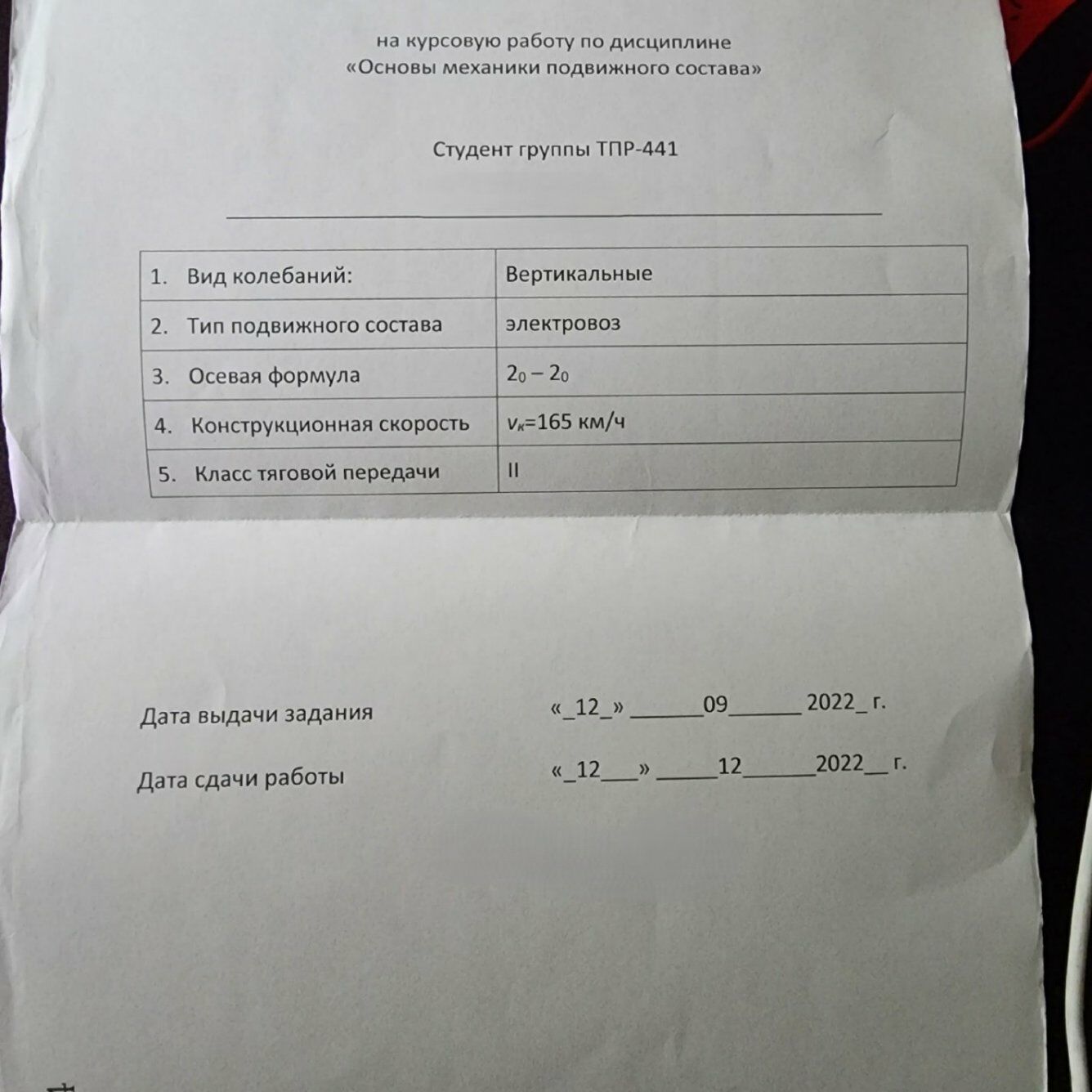 Курсовая работа Эл.воз 20-20 165 II: ИССЛЕДОВАНИЕ СВОБОДНЫХ И ВЫНУЖДЕННЫХ КОЛЕБАНИЙ МОДЕЛЕЙ ПОДВИЖНОГО СОСТАВА вариант Вертикальный