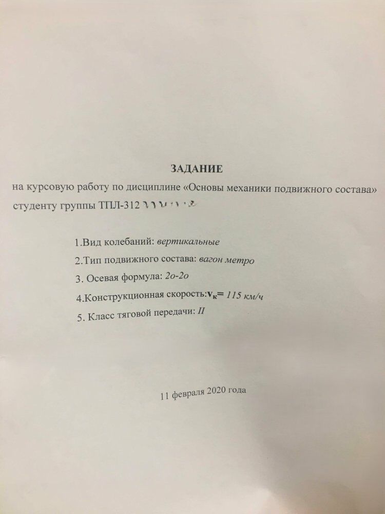 Российский университет транспорта РУТ (МИИТ) Кафедра "Электропоезда и локомотивы" Дисциплинна: Основы механики тягового подвижного состава Тема:Исследование горизонтальных колебаний одиночной тележки подвижного состава с осевой формулой 2о-2о Вид колебанийВертикальный Тип подвижного состававагон метро Осевая формула20-20 Класс тягового приводаII Конструкционная скорость км/ч115 .
