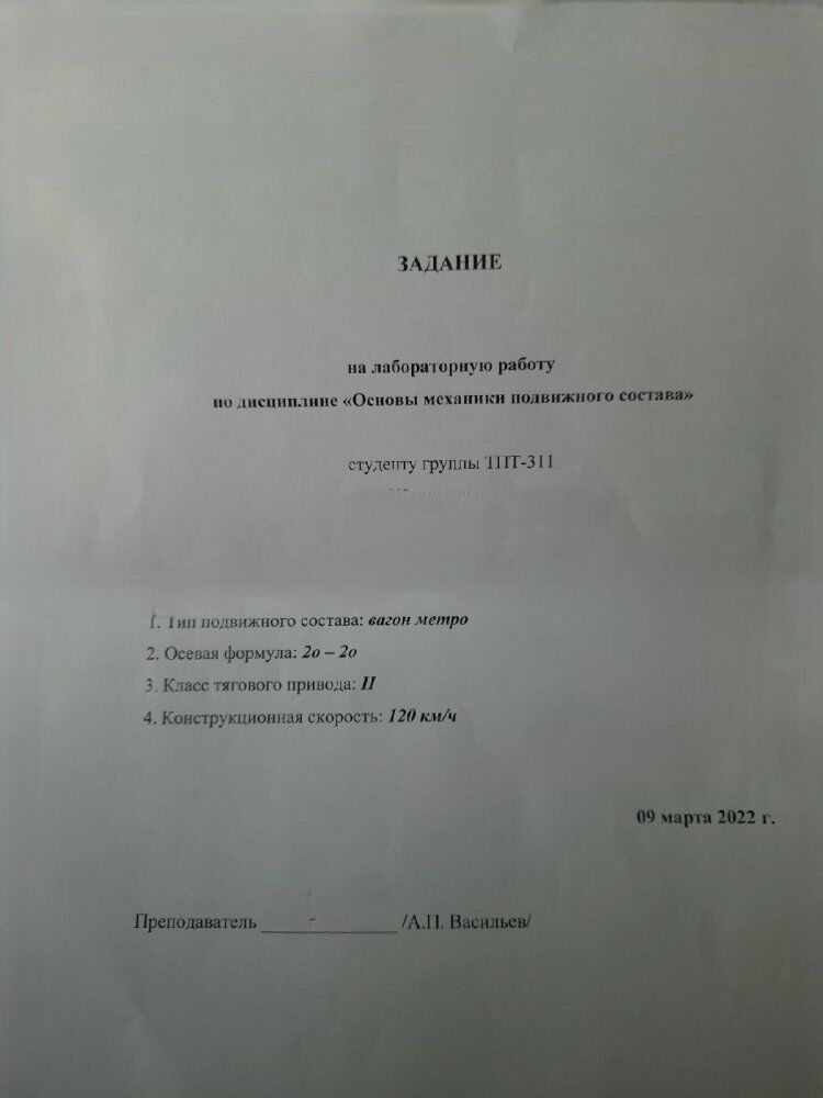 Лабораторная работа В.метро 20-20 120 II: Исследование горизонтальных колебаний и устойчивость движения одиночной тележки экипажа с осевой формулой 2о 2о