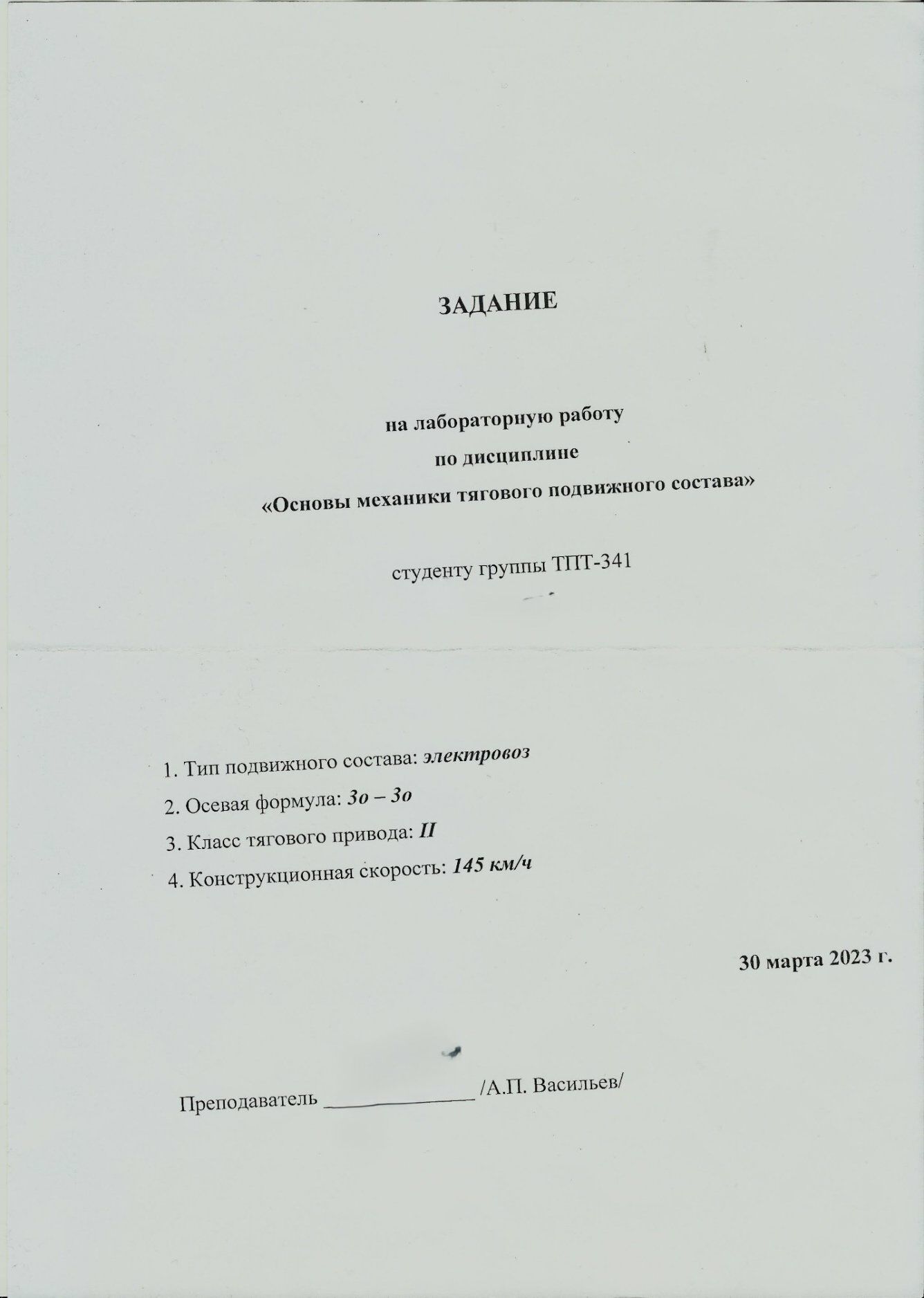 Лабораторная работа Эл.воз 30-30 145 II: Исследование горизонтальных колебаний и устойчивости движения одиночной тележки экипажа с осевой формулой 30-30