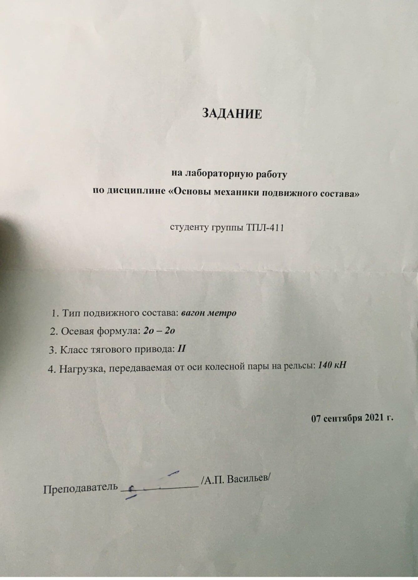 МИНИСТЕРСТВО ТРАНСПОРТА РОССИЙСКОЙ ФЕДЕРАЦИИ «РОССИЙСКИЙ УНИВЕРСИТЕТ ТРАНСПОРТА (МИИТ)» ИНСТИТУТ ТРАНСПОРТНОЙ ТЕХНИКИ И СИСТЕМ УПРАВЛЕНИЯ Кафедра «Электропоезда и локомотивы» ЛАБОРАТОРНАЯ РАБОТА ПО ДИСЦИПЛИНЕ ОСНОВЫ МЕХАНИКИ ПОДВИЖНОГО СОСТАВА РАСЧЕТ РАМЫ ТЕЛЕЖКИ НА ПРОЧНОСТЬ ПРИ ДЕЙСТВИИ ВЕРТИКАЛЬНОЙ СТАТИЧЕСКОЙ НАГРУЗКИ Вид колебанийВертикальный Тип подвижного состававагон метро Осевая формула20-20 Класс тягового приводаII Нагрузка передаваемая колесной парой140кН .