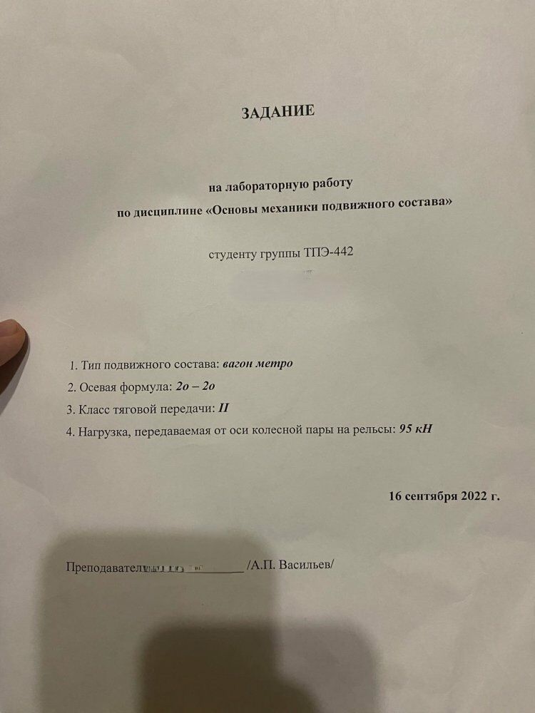 МИНИСТЕРСТВО ТРАНСПОРТА РОССИЙСКОЙ ФЕДЕРАЦИИ «РОССИЙСКИЙ УНИВЕРСИТЕТ ТРАНСПОРТА (МИИТ)» ИНСТИТУТ ТРАНСПОРТНОЙ ТЕХНИКИ И СИСТЕМ УПРАВЛЕНИЯ Кафедра «Электропоезда и локомотивы» ЛАБОРАТОРНАЯ РАБОТА ПО ДИСЦИПЛИНЕ ОСНОВЫ МЕХАНИКИ ПОДВИЖНОГО СОСТАВА РАСЧЕТ РАМЫ ТЕЛЕЖКИ НА ПРОЧНОСТЬ ПРИ ДЕЙСТВИИ ВЕРТИКАЛЬНОЙ СТАТИЧЕСКОЙ НАГРУЗКИ Вид колебанийВертикальный Тип подвижного состававагон метро Осевая формула20-20 Класс тягового приводаII Нагрузка передаваемая колесной парой95кН .