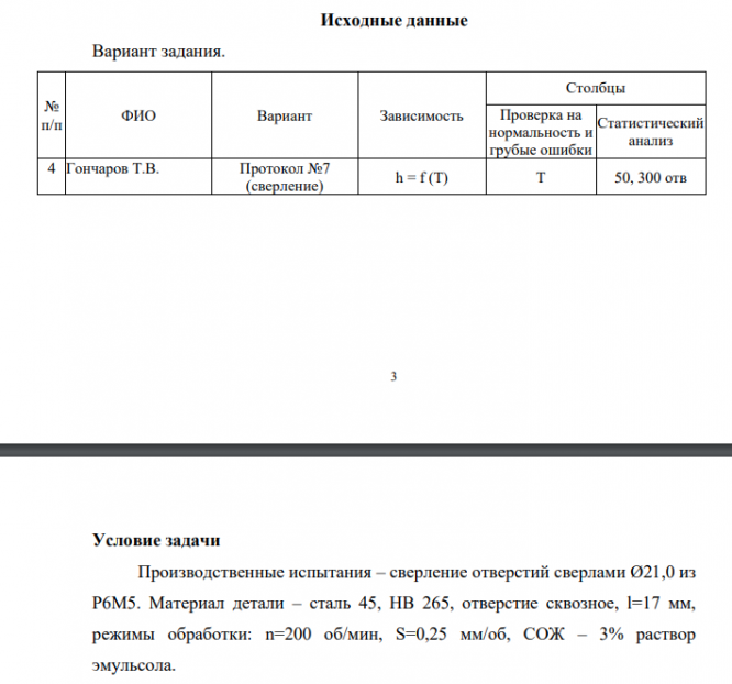 Производственные испытания – сверление отверстий сверлами Ø21,0 из Р6М5. Материал детали – сталь 45, HB 265, отверстие сквозное, l=17 мм, режимы обработки: n=200 об/мин, S=0,25 мм/об, СОЖ – 3% раствор эмульсола.