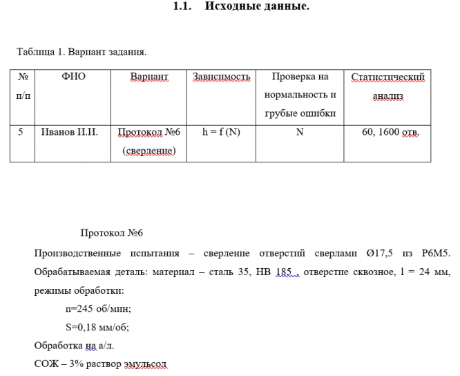 Для студентов МГТУ им. Н.Э.Баумана по предмету Основы научных исследований (ОНИ)Домашнее задание №1 (протокол №6 - сверление)Домашнее задание №1 (протокол №6 - сверление)