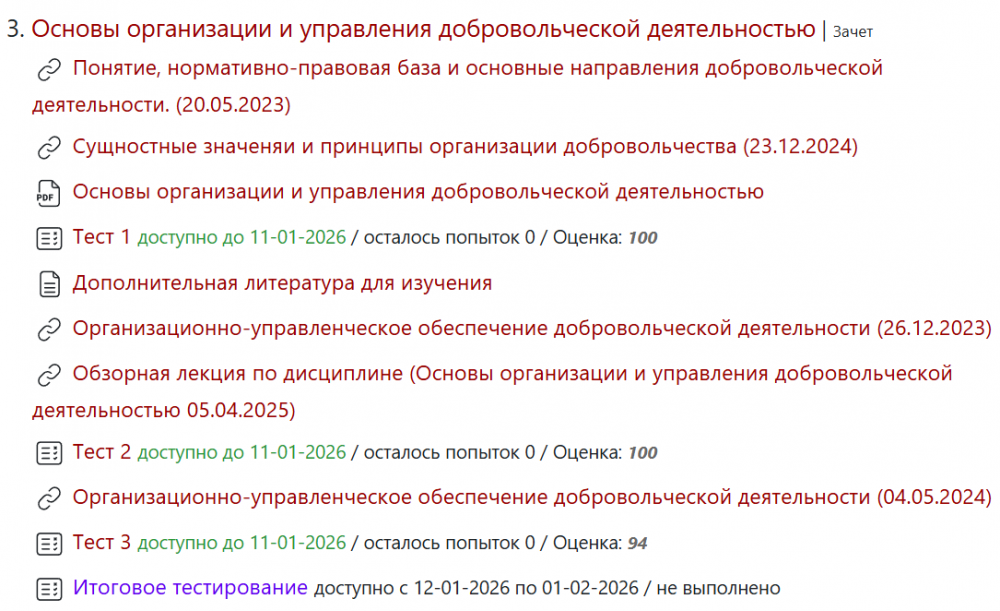 Ответы к зачёту Тесты 1-3: Основы организации и управления добровольческой деятельностью (Тесты 1-3)