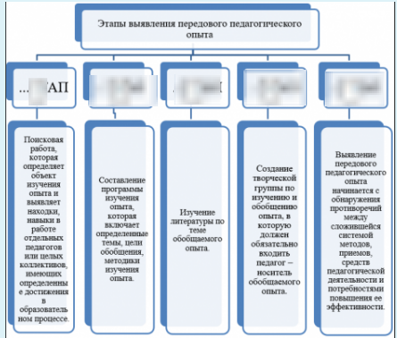 Переместите в представленную схему (второй ряд составных элементов) цифры, с помощью которых будет отражена правильная последовательность этапов процесса выявления передового педагогического опыта.