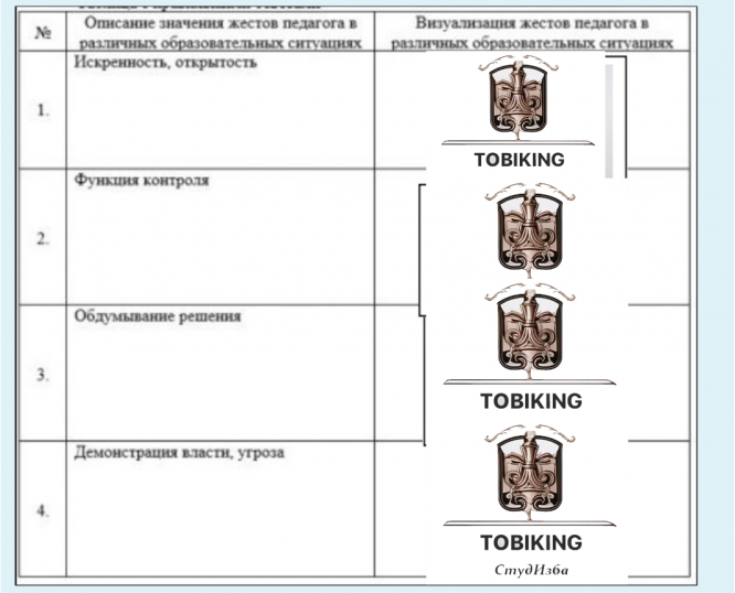 Установите соответствие между конкретным изображением пантомимики педагога и описанием значения его жестикуляции в различных образовательных ситуациях. Для этого переместите избранное фотографическое изображение в соответствующую ячейку таблицы, используйте при этом левую кнопку компьютерной мыши