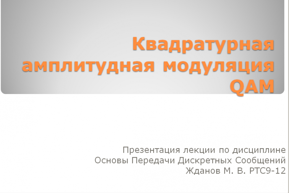 Для студентов НГТУ по предмету Основы передачи дискретных сообщений (ОПДС)Презентация - Квадратурная амплитудная модуляция QAMПрезентация - Квадратурная амплитудная модуляция QAM