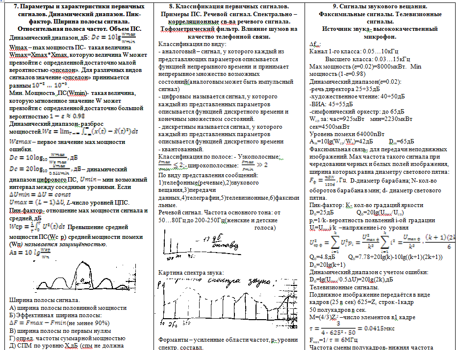 - Параметры и характеристики первичных сигналов. Динамический диапазон. Пик-фактор. Ширина полосы сигнала. Относительная полоса частот. Объем ПС.