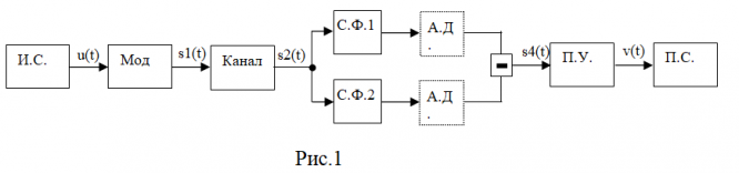 - П.С. – Получатель сообщения. Оконечное устройство, осуществляющее обратное преобразование бинарного сообщения в аналоговый сигнал.