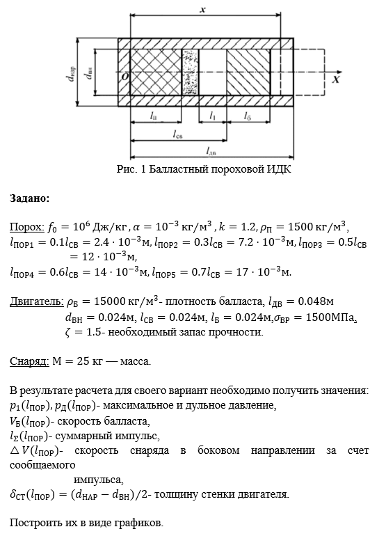 ДЗ 1: Пороховой ИДК балластного типа вариант 2