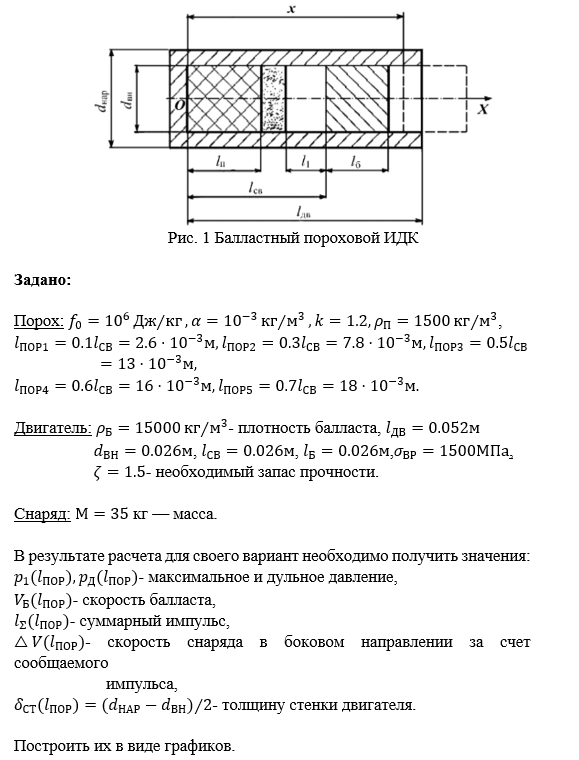 ДЗ 1: Пороховой ИДК балластного типа вариант 3