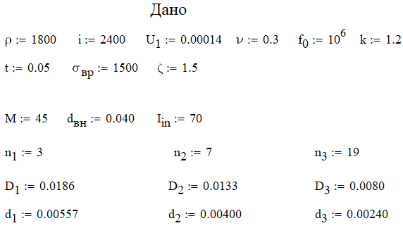 В результате расчета для своего варианта необходимо получить значения: