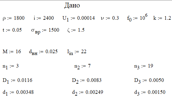 В результате расчета для своего варианта необходимо получить значения:lзар(n) - длину шашек топлива,