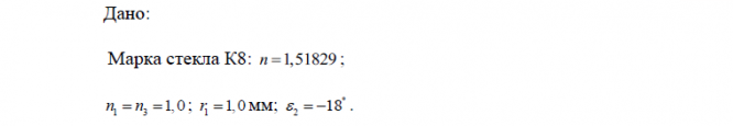 Отчет по лабораторной работе №1 "Общий алгоритм синтеза исходного варианта однокомпонентного объектива с применением алгебраического метода на примере синтеза двухлинзового несклееного объектива"