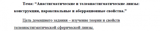Домашнее задание "Анастигматические и телеанастигматические линзы: конструкция, параксиальные и аберрационные свойства"