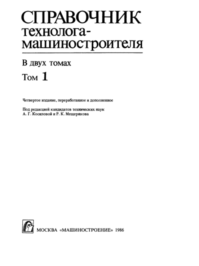 Для студентов МГТУ им. Н.Э.Баумана по предмету Основы проектирования режущего инструмента (ОПРИ)А.Г, Косилова, Р.К. Мещерякова - Справочник технолога-машиностроителяА.Г, Косилова, Р.К. Мещерякова - Справочник технолога-машиностроителя 2017-06-18СтудИзба