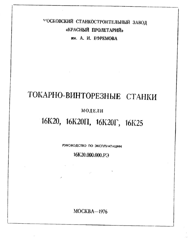 Для студентов МГТУ им. Н.Э.Баумана по предмету Основы проектирования режущего инструмента (ОПРИ)Руководство по эксплуатации - Токарно-винторезные станкиРуководство по эксплуатации - Токарно-винторезные станки 2022-06-11СтудИзба