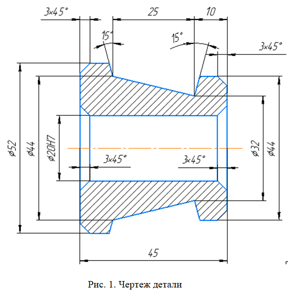 Чтобы выполнить полную обработку детали потребуется 2 установа из-за внутренней фаски.