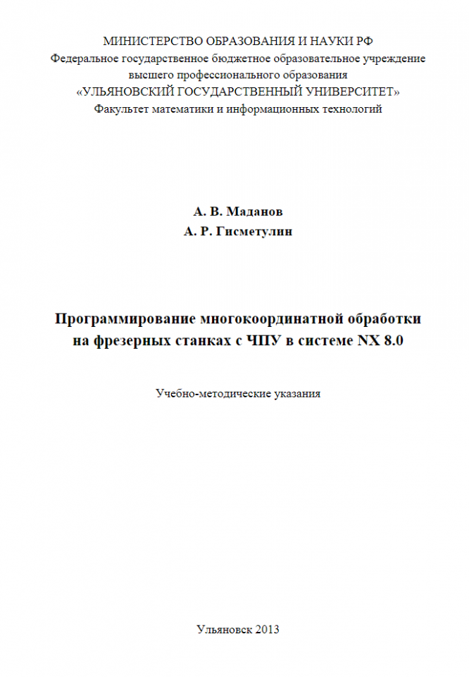 Для студентов МГТУ им. Н.Э.Баумана по предмету Основы проектирования режущего инструмента (ОПРИ)А.В. Маданов - Программирование многокоординатной обработки на фрезерных станках с ЧПУ в системе NX 8.0А.В. Маданов - Программирование многокоординатной обработки на фрезерных станках с ЧПУ в системе NX 8.0 2018-11-18СтудИзба