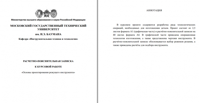 Для студентов МГТУ им. Н.Э.Баумана по предмету Основы проектирования режущего инструмента (ОПРИ)Курсовой проект "Основы проектирования режущего инструмента"Курсовой проект "Основы проектирования режущего инструмента"